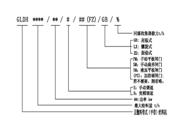 無(wú)撒料帶式(甲帶)給料機(jī)型號(hào)說(shuō)明: