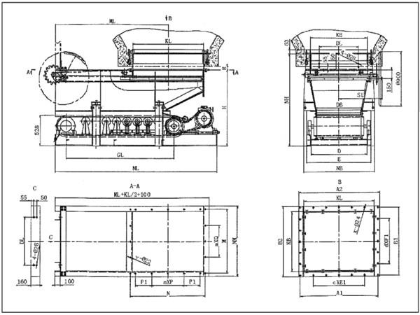 無(wú)撒料帶式(甲帶)給料機(jī)的外形及連接尺寸: